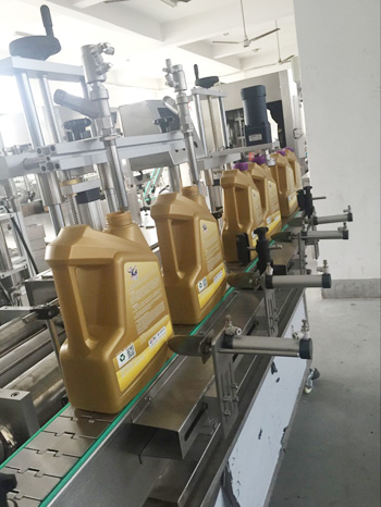 設備描述:潤滑油灌裝旋蓋一體機為活塞式計量方式。計量范圍為1升-5升,離合式旋蓋結構,確保旋蓋合格率高,不傷蓋。本設備為灌裝旋蓋一體機,結構緊湊,性價比高。該型號灌裝機適用于醫(yī)藥、日化、食品、農藥及特殊行業(yè),是對酒精等液體進行灌裝的理想設備。