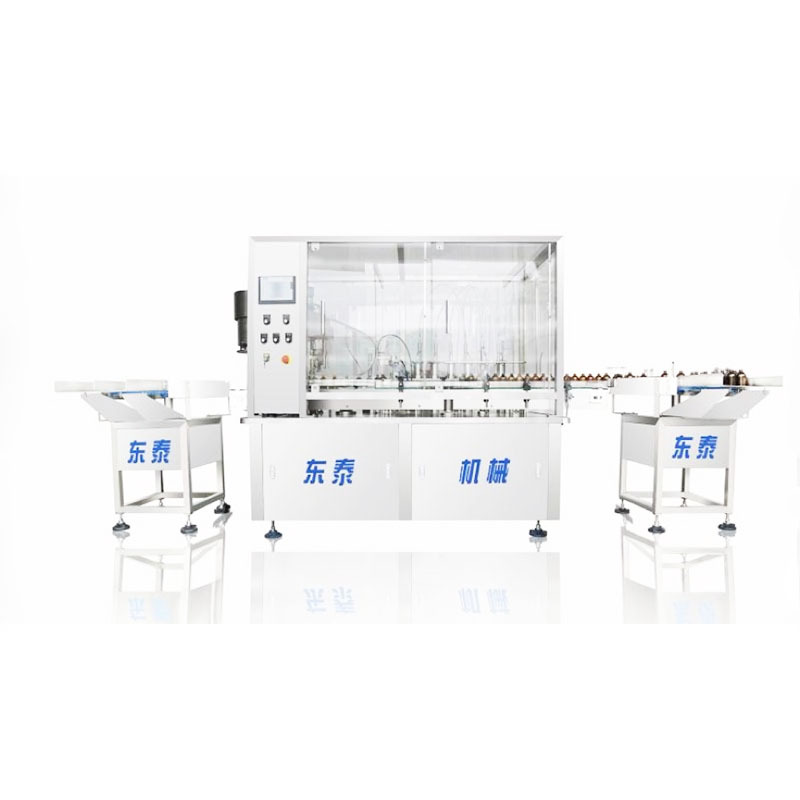西林瓶(penicillin bottle),又稱:硼硅玻璃或鈉鈣玻璃管制(模制)注射劑瓶,是一種膠塞封口的小瓶子。早期盤尼西林多用其盛裝,故名西林瓶。西林瓶灌裝的多為液體,藥品、營養液等,針對這種小瓶型液體灌裝,機械廠家制造出小計量液體灌裝機來幫助液體灌裝的灌裝和生產,小計量液體灌裝機也叫作西林瓶灌裝旋蓋一體機,小計量液體灌裝機屬于聯動機,其工作步驟包含了理瓶、灌裝、理蓋。掛蓋。壓蓋、旋蓋的步驟,滿足了液體包裝的大部分步驟,那么液體灌裝機該如何選擇呢?